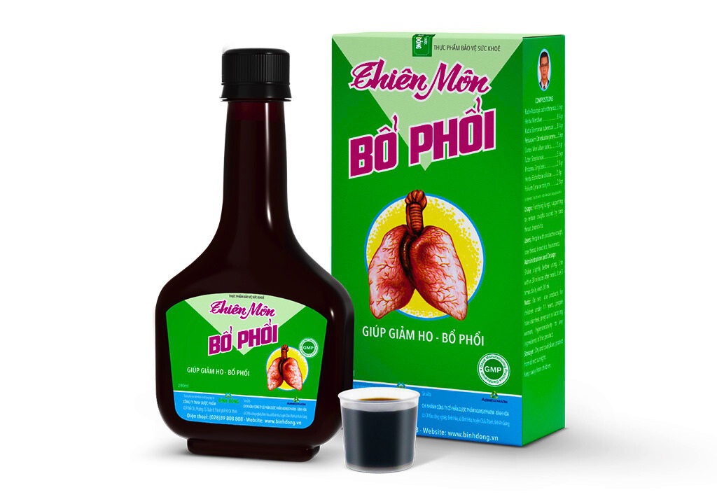Ví dụ sản phẩm: Thiên Môn Bổ Phổi Bình Đông, sản phẩm nổi bật từ Dược Bình Đông, chứa thiên môn đông, bạc hà, trần bì, giúp bổ phế, giảm ho khan, ho có đờm và làm mát phổi. Sản phẩm được kiểm định an toàn bởi Cục An Toàn Thực Phẩm – Bộ Y tế, phù hợp cho người bị đau rát họng, ho kéo dài.